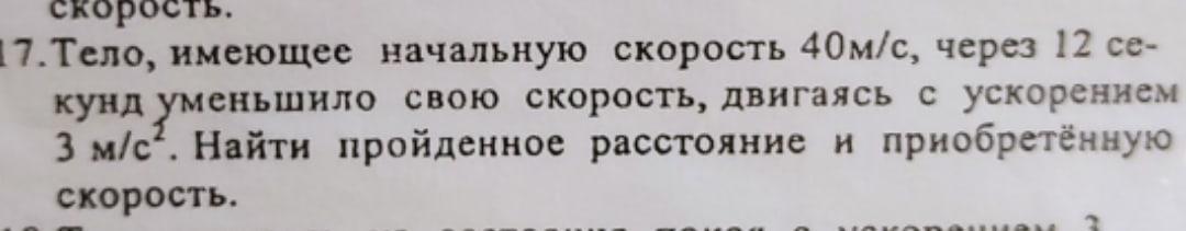 s₁ = v₀t₁ - 0.5at₁² = 40 · 12 - 0.5 · 3 · 12² = 264 (м)