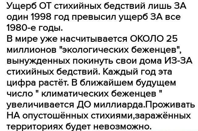 Прочитайте текст Вставьте предлоги за X2 из-за в на от около до . Ущерб ...... стихийных бедствий лишь....... один