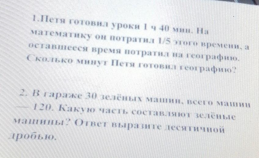 Ответ:На математику Петя потратил 20 минут,а на географию 80 минут или 1 час и 20 минут