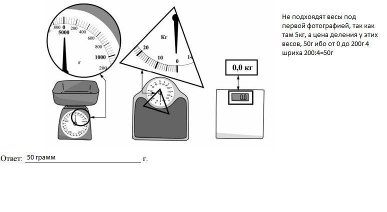 и прямоугольной выносках крупно показаны фрагменты шкал этих весов. Определите цену