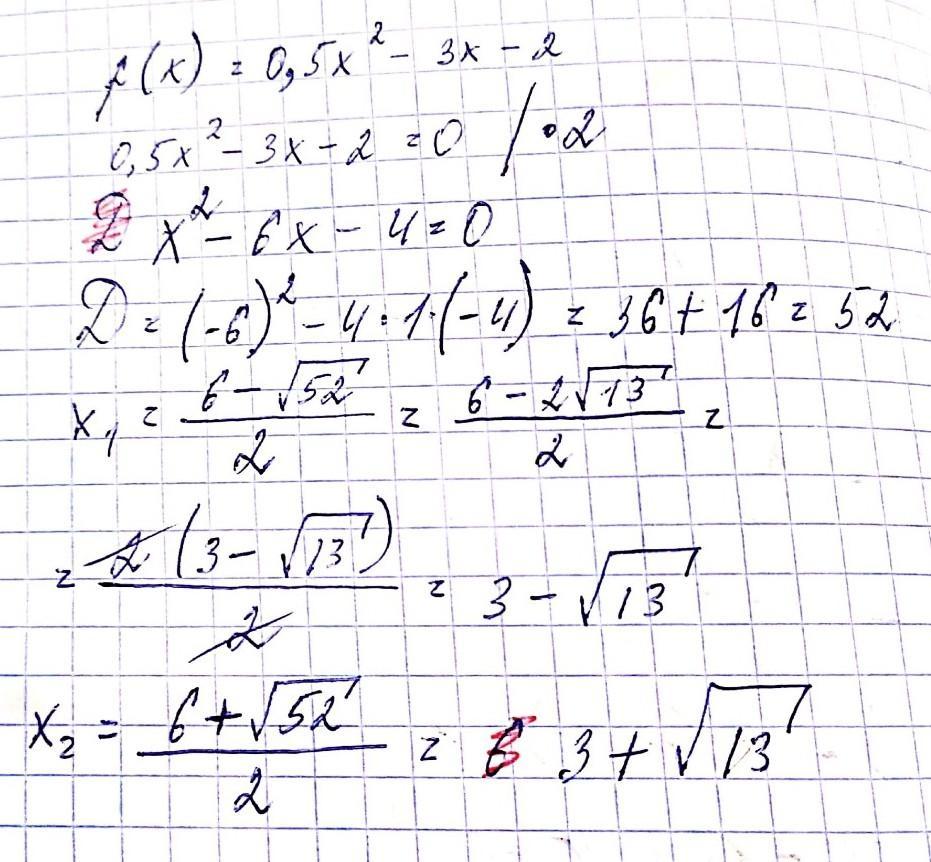 Нули функции в точках x1 = 3 - √13 и x2 = 3 + √13. Да-да...