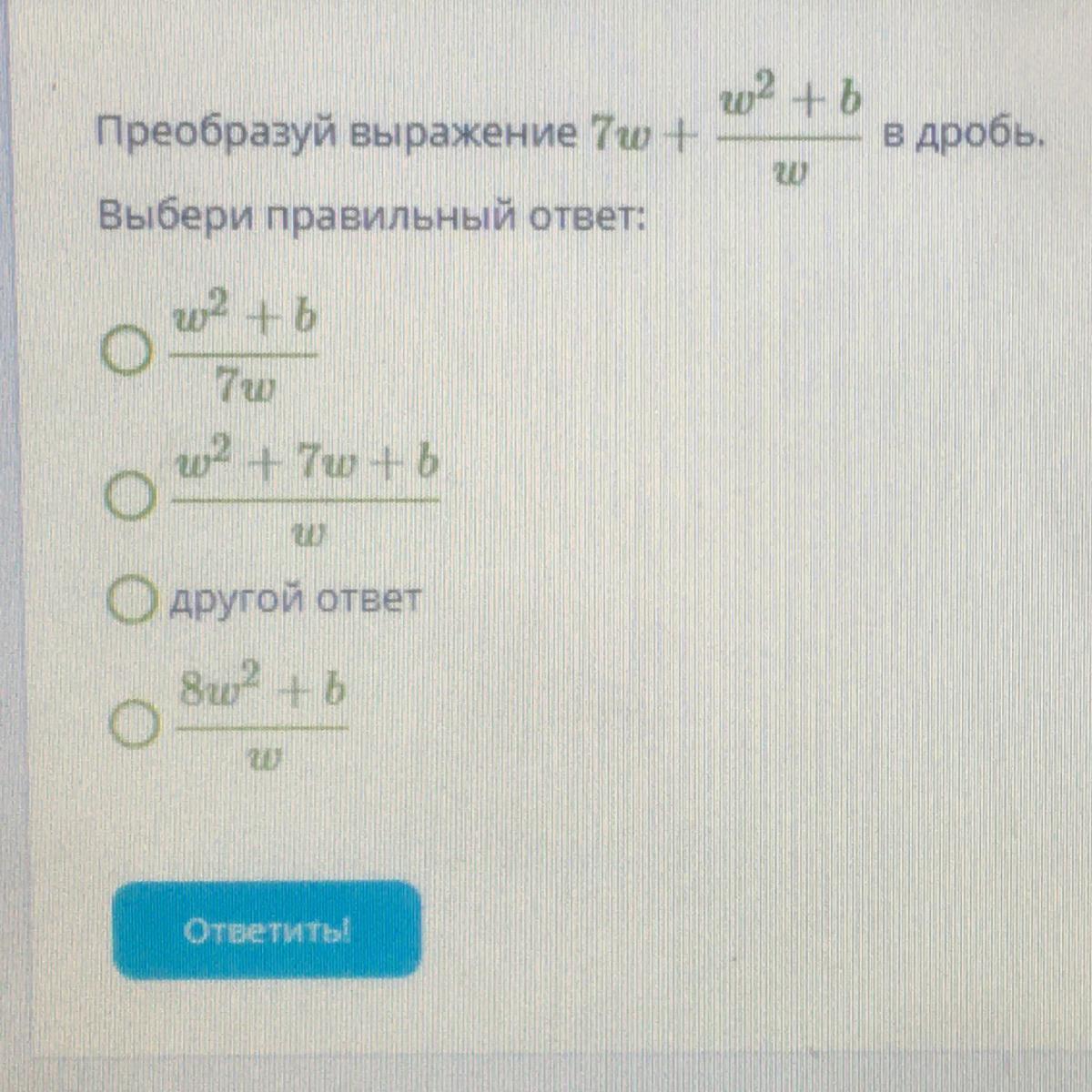 7w + (w² + b)/w = 7w + w + b/w = 8w + b/w = 8w²/w + b/w = (8w² + b)/w