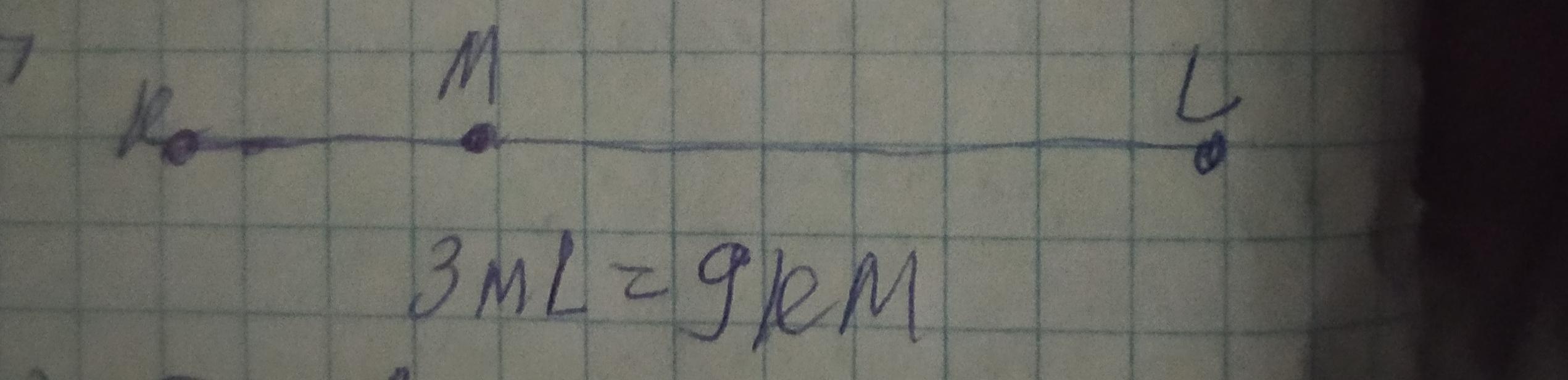 Вычисли длины частей отрезка, если 3ML=9KM.