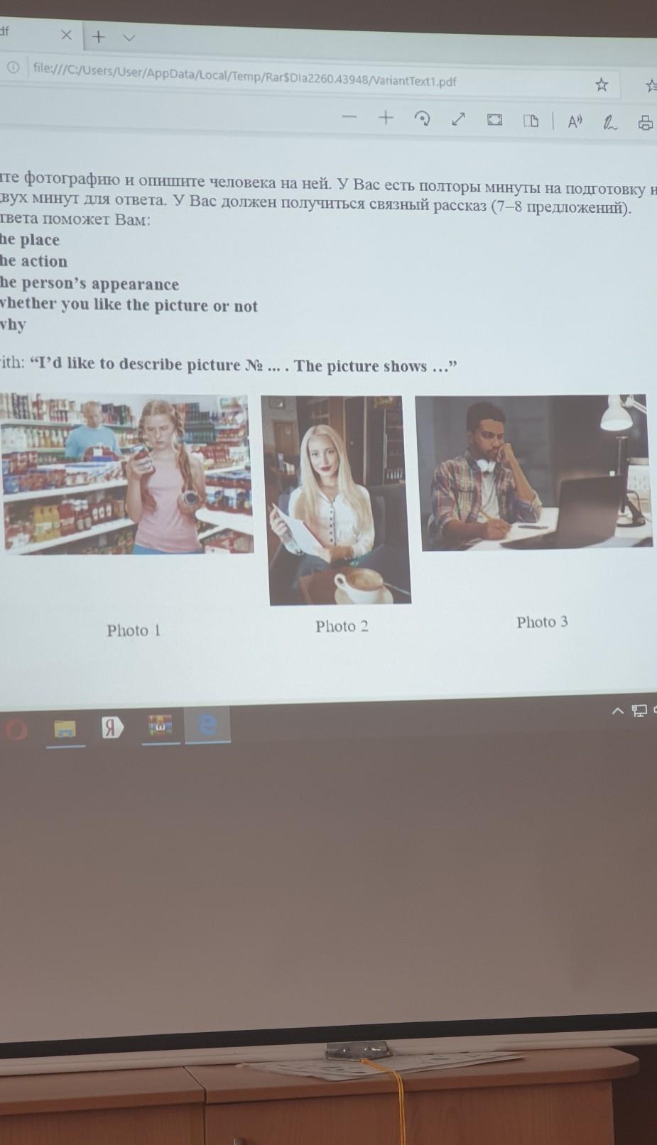 выберите фотографию и опишите человека на ней. У вас есть полторы минуты на подготовку и не более двух минут для ответа. У вас должно получиться связанный рассказ (7-8 предложений)