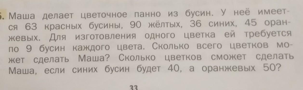 Если синих будет 40 то есть на 4 больше, цветков все равно будет 4, так как на еще один цветок надо еще 9 бусин, а дали всего 4