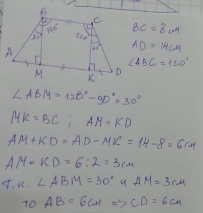 ции, основания которой равны 14 см и 8 см, а один из углов равен