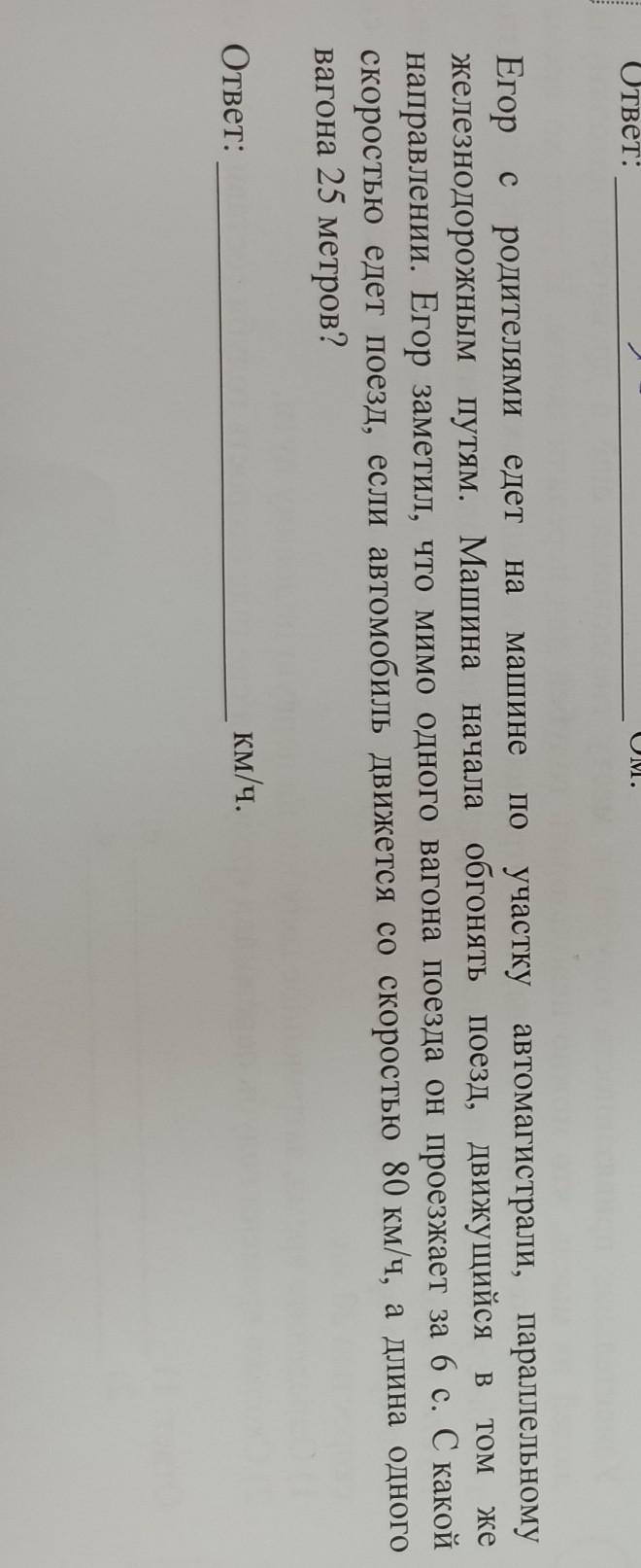 скорость авто относительно поезда 25/6м/с=15км/ч, тогда относительно земли 80+15= 95 км/ч