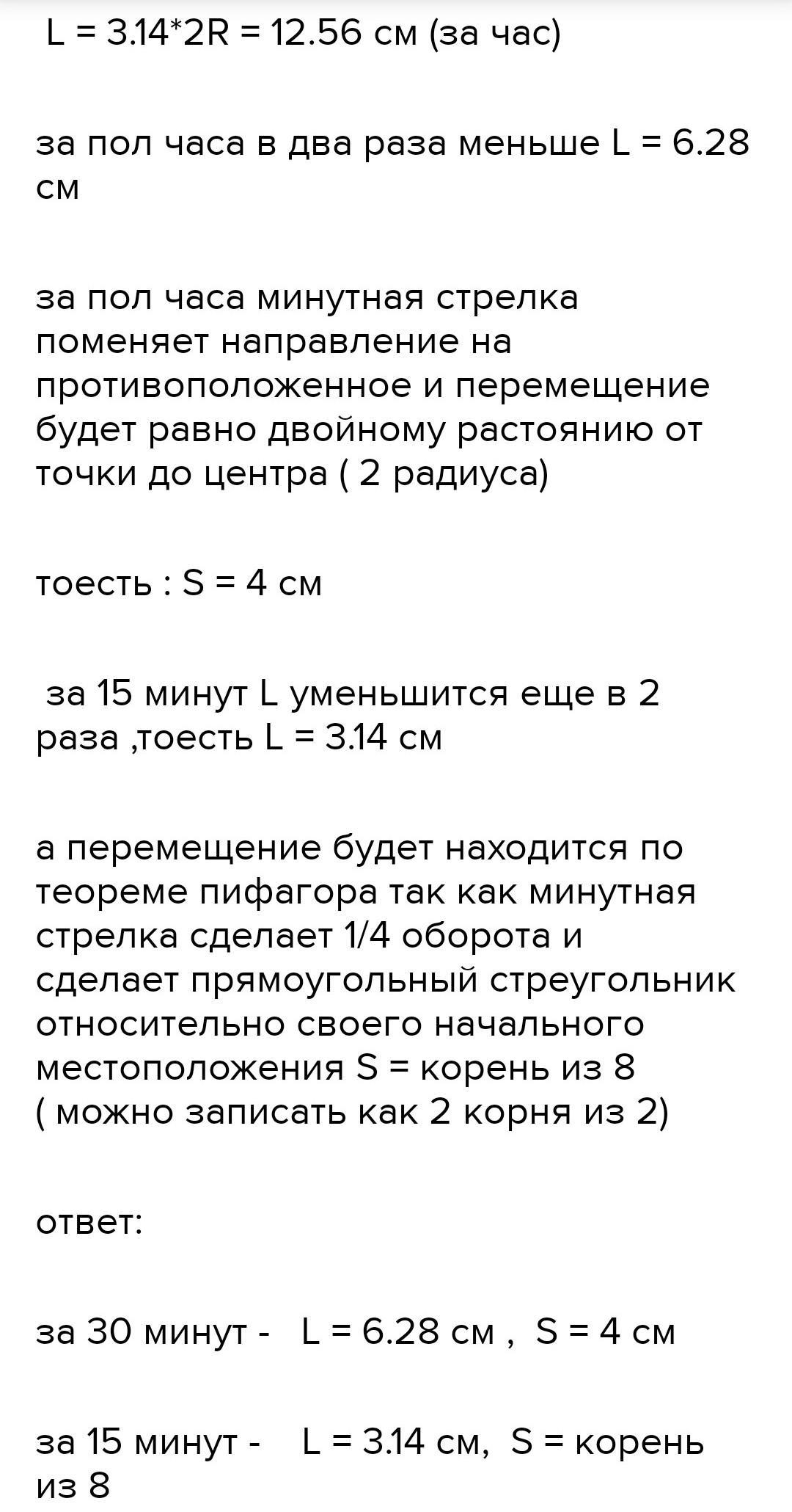 Длина минутной стрелки часов 10 см.