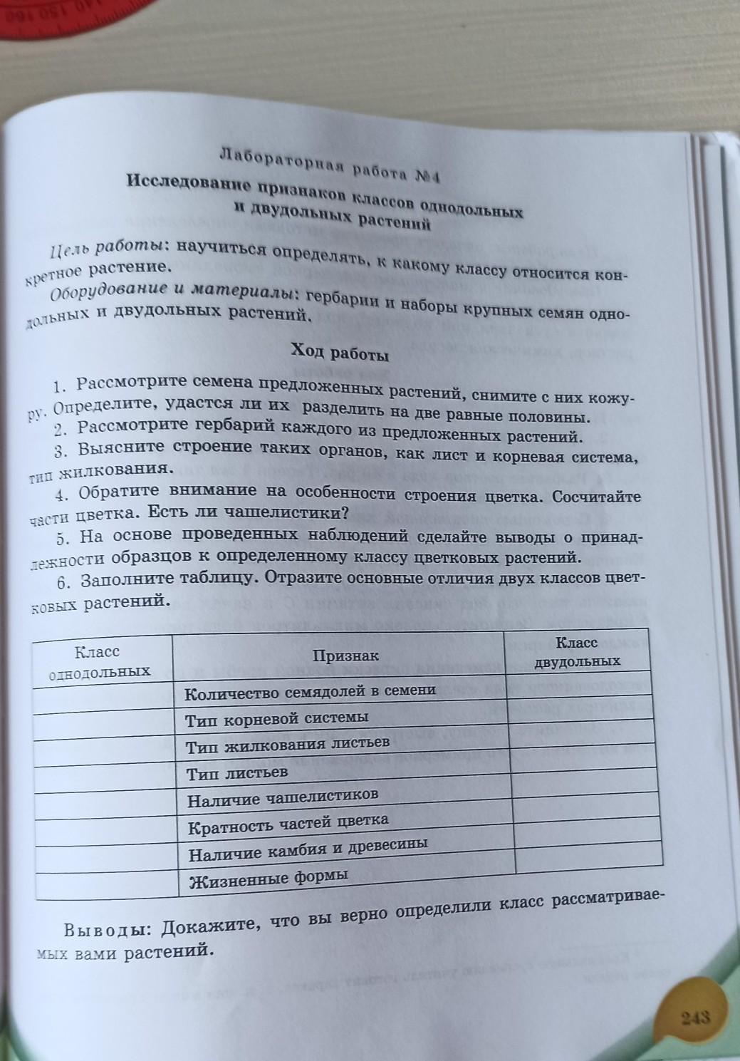.ДАЮ 70 БАЛЛОВ Лабороторная работа биология 8 класс Исследование признаков класса однодольных и двудольных растений растений.Лучше отправить фото тетради..