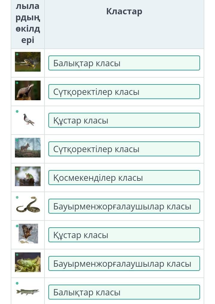 Омыртқалылардың өкілдерін кластар бойынша орналастыр