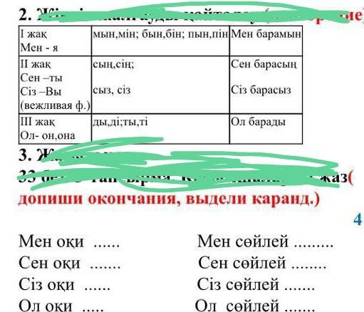 Мен оқимын Мен сөйлеймін Сен оқисың Сен сөйлейсің Сіз оқисыз Сіз сөйлейсіз Ол оқиды Ол сөйлейді