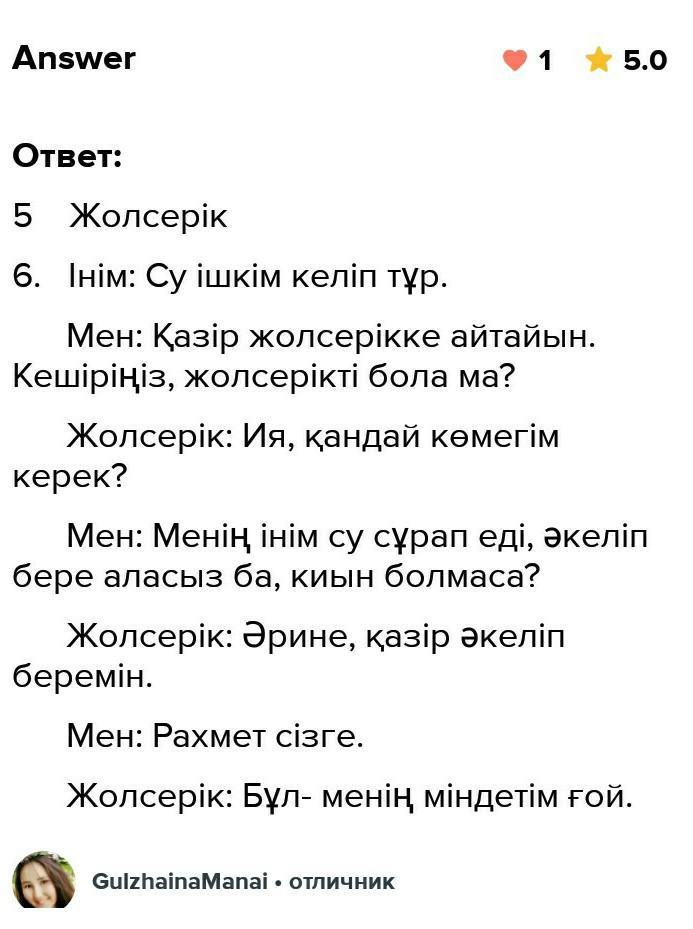 ОТБАСЫҢМЕН БІРГЕ ҰШАҚПЕН ШЕТЕЛГЕ ДЕМАЛУҒА ҰШЫП БАРАСЫҢ. КЕНЕТ ІНІҢ СУ ІШКІСІ КЕЛЕТІНІН АЙТТЫ. ЖОЛСЕРІКТІ ҚАЛАЙ ШАҚЫРАСЫҢ ? КӨРШІҢМЕН ОСЫ ТАҚЫРЫПТЫ ДИАЛОГ ҚҰРА