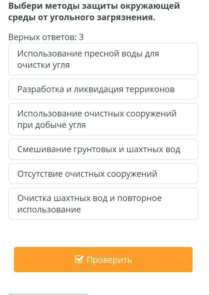 Выбери методы защиты окружающей среды от угольного загрязнения.
