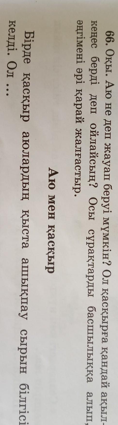 Ол аюдан сен қыс бойы ұйықтайсың сол кезде ашықпайсыңба?,- деп сұрады. Аю оған біз жаз бойы азық іздеп қыстың қамын жасаймыз. Жаз бойы жеген азығымыз қысқа азық болыды. Сен де солай еңбек етсең қыс бойы ашықпайсың!,-деп кеңес аю қасқырға жауап қайтарды.