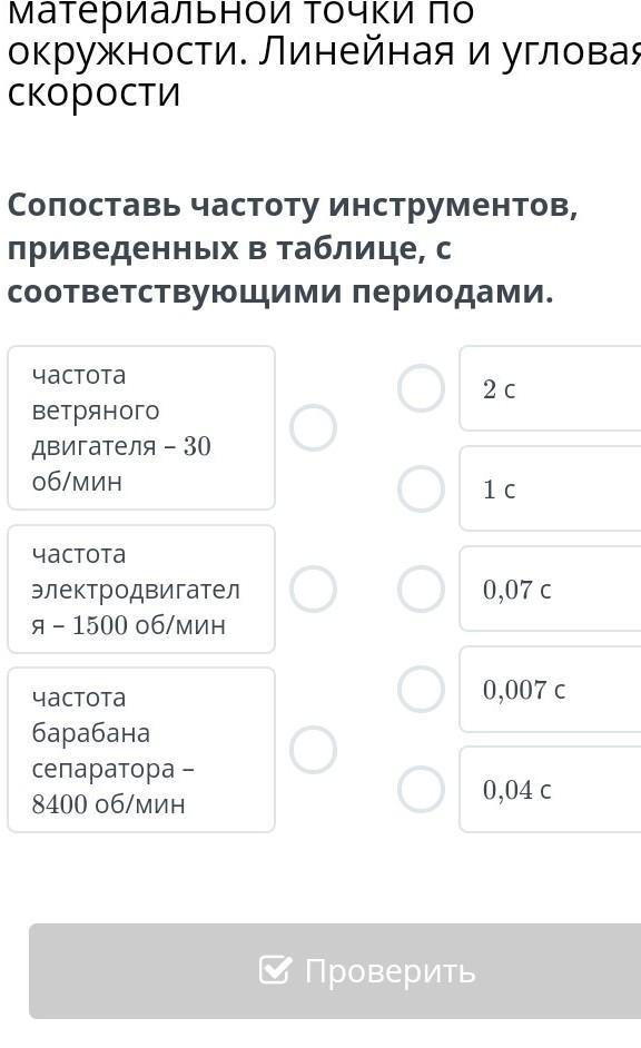 Сопоставь частоту инструментов, приведенных в таблице, с соответствующими периодами.