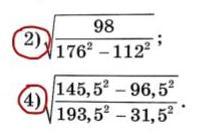 2). √(98/(176²-112²))=√(98/((176-112)(176+112)))=√(98/(64*288))= √(2*49/(64*2*144))=√(49/(64*144))=7/(8*12)=7/96;