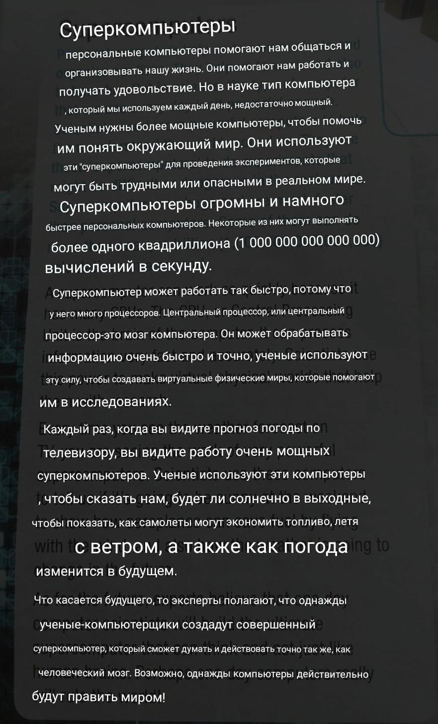 Ответ: 1.Scientists use supercomputers to conduct experiments that can be difficult or dangerous in the real world