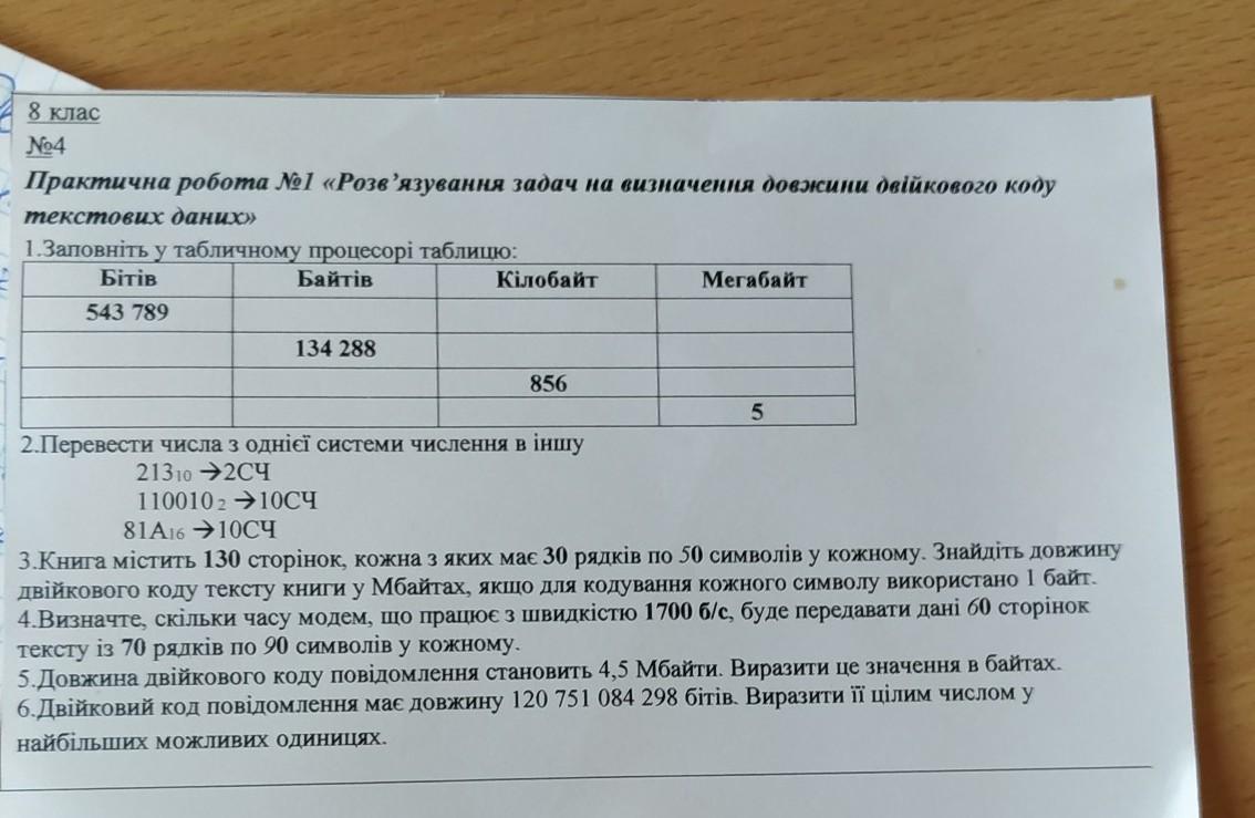 6.Двійковий код повідомлення має довжину 120 751 084 298 бітів. Виразити її цілим числом у