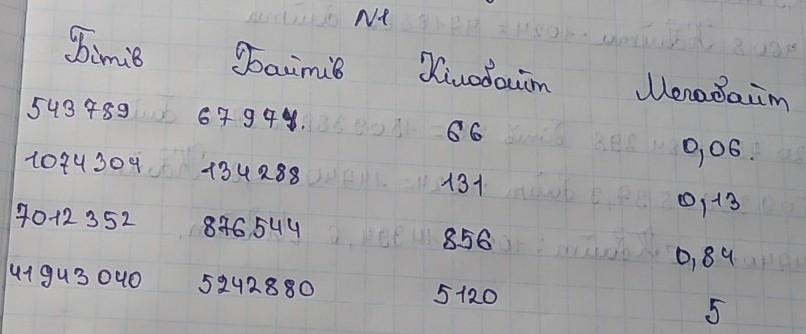 5.Довжина двійкового коду повідомлення становить 4,5 Мбайти. Виразити це значения в байтах.