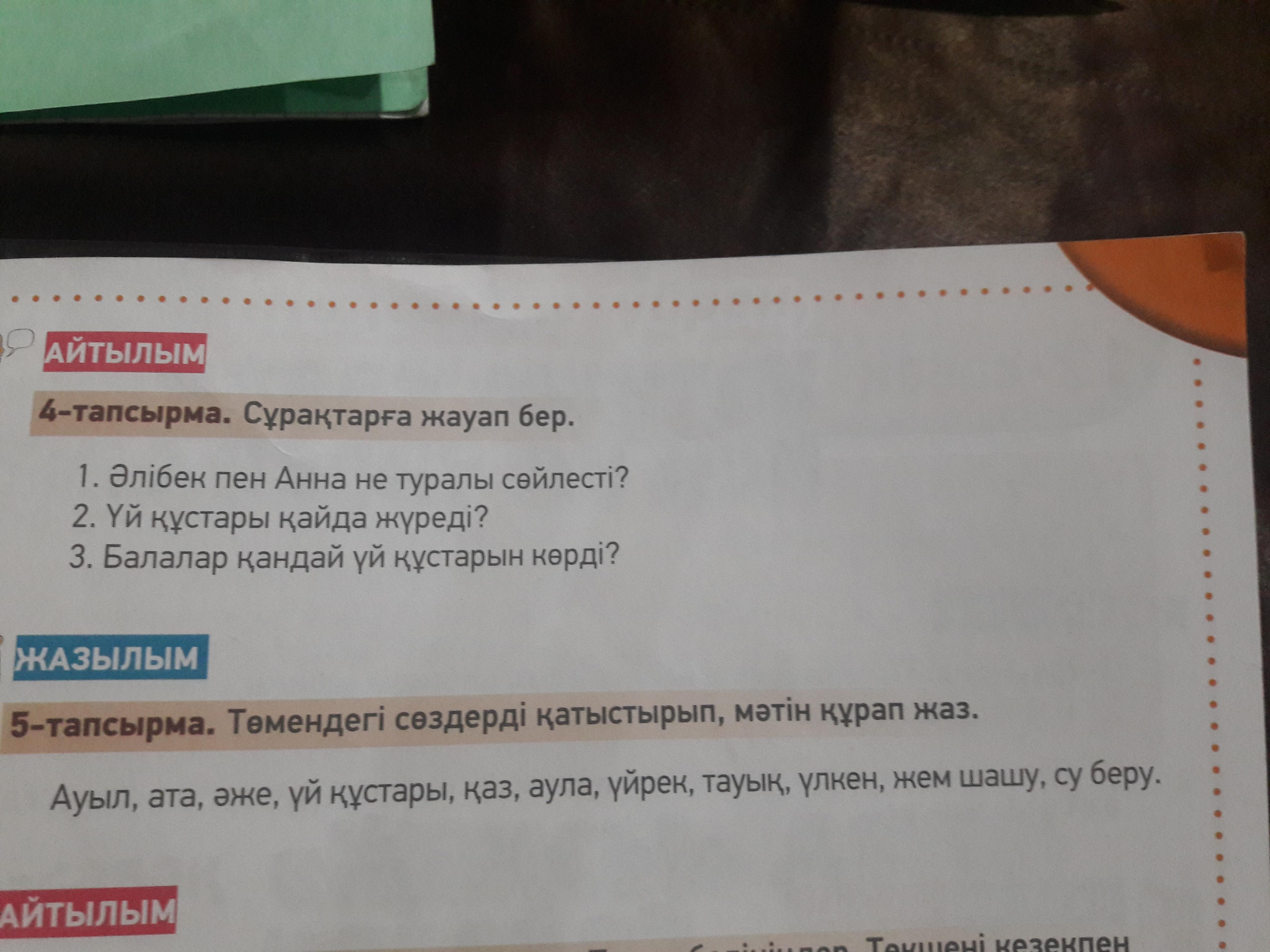 мен жазда атам мен әжеме ауылға бардым. Ауылда үй құстары бар. Олар:қаз,тауық,үйрек. Құстар аулада жүреді. Ауламыз өте үлкен. Біз сол аулана құстарға жем су береміз.