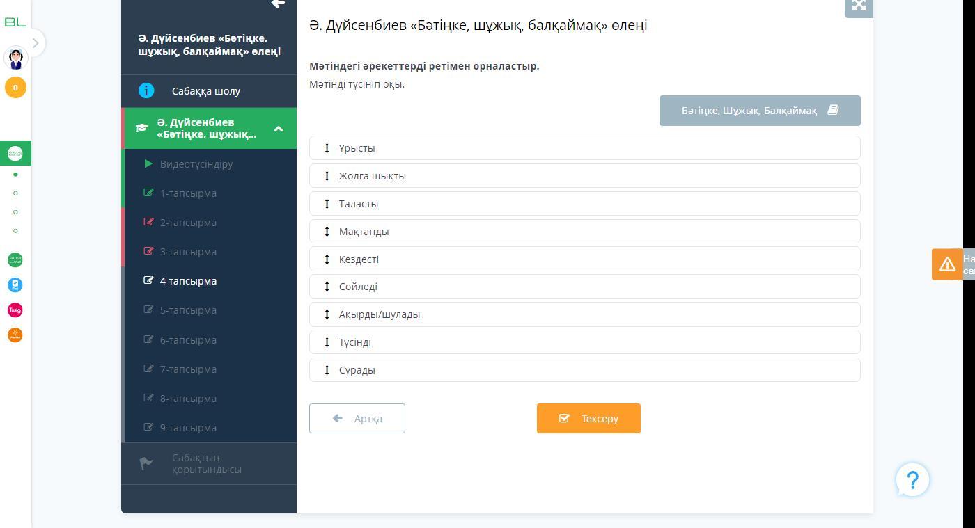 Мәтіндегі әрекеттерді ретімен орналастыр.