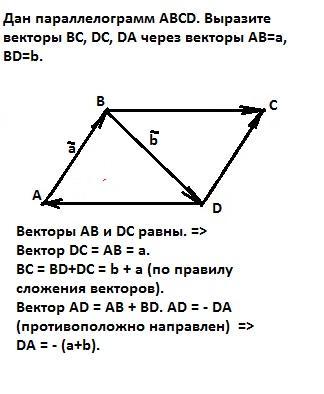 BC = BD+DC = b + a (по правилу сложения векторов).