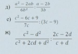 1) (a²-2ab)/(6b²) : (a-2b)/(3b) = (a(a-2b))/(6b²) * (3b)/(a-2b) = a/(2b)