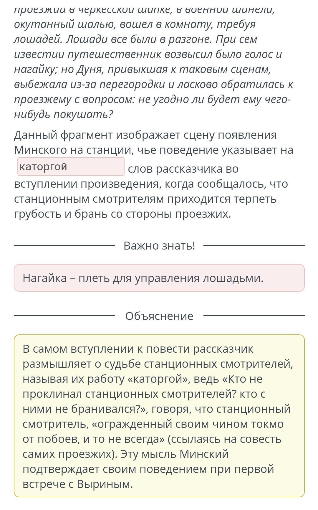 слов рассказчика во вступлении произведения, когда сообщалось, что станционным смотрителям приходится терпеть грубость и брань со стороны проезжих. Срочно пожалуйста