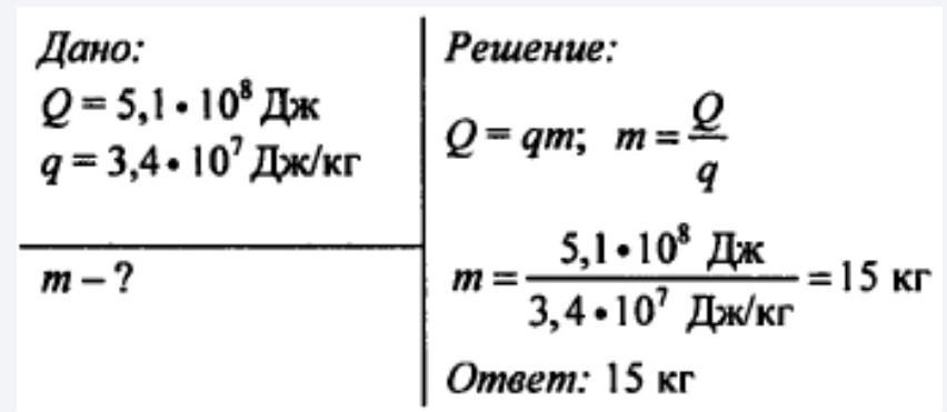 4. В топке котла парового двигателя сожгли торф массой 30 т. Какой массой каменного угля можно было бы заменить сгоревший торф? (Удельную теплоту сгорания торфа принять равной 1,5 • 107 Дж/кг.)