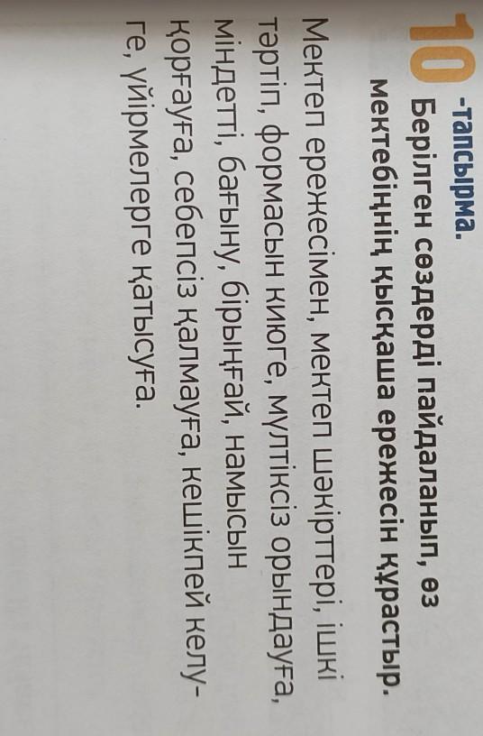 мектеп ережерымен танысатын болсак оларды мектеп шакырттеры гана емес устаздарда багыну мындетты жанеде ишкы тартыпты сактап оз сыныбынын намысын коргауга тиысты ол ушын бырынгай уйыпмелерге катысып сабактан себебсыз калмауга кешыкпеуге барынша тырысу кажет жанеде форманы киюге тиыс осы ережелерды мултыксыз орындау кажет себебе мектеп асыл жер болып саналады