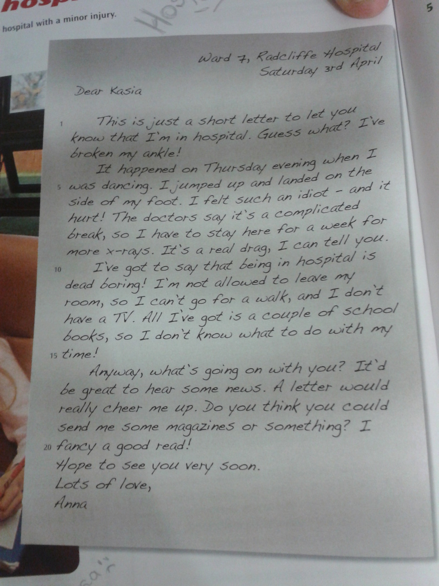 Помогите написать личное письмо не обязательно про больницу главное что бы было личное ...по примеру