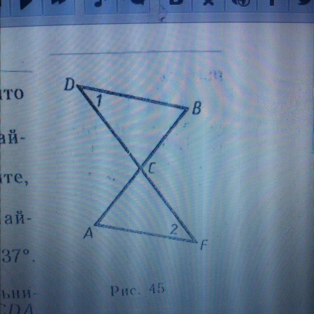Тут все просто ACF=DCB по стороне(DC=CE), и двум углам (Угол 1= углу 2)угол DCB=углуACF(Т.к они вертикальные).Следовательно стороны тоже равны.