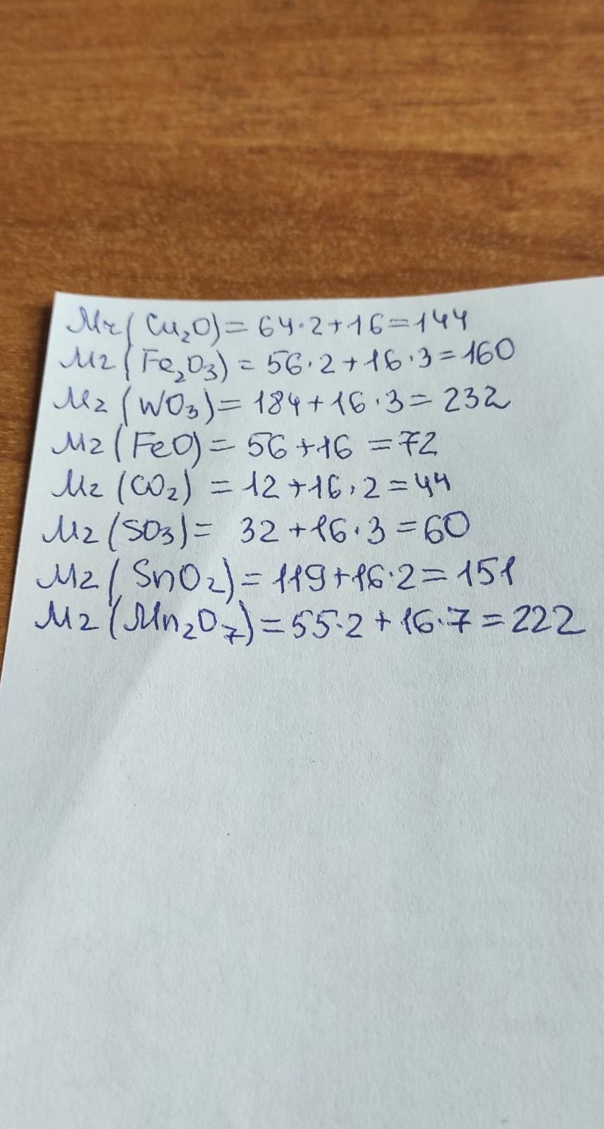 по составленной формуле вычислите молекулярные массы данных оксидов