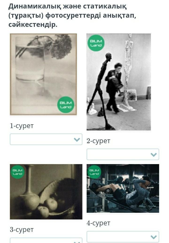 Динамикалық және статикалық (тұрақты) фотосуреттерді анықтап, сәйкестендір.