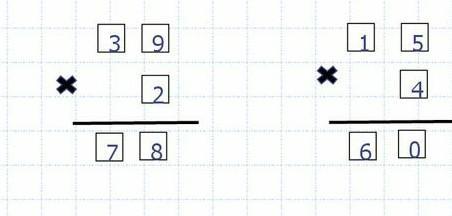 9. Впишите в квадраты цифры от 0 до 9 так, чтобы получилось два верных примера на умножение