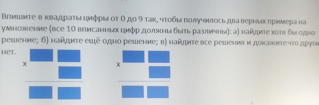 умножение (все 10 вписанных цифр должны быть различны): а) найдите хотя бы одно