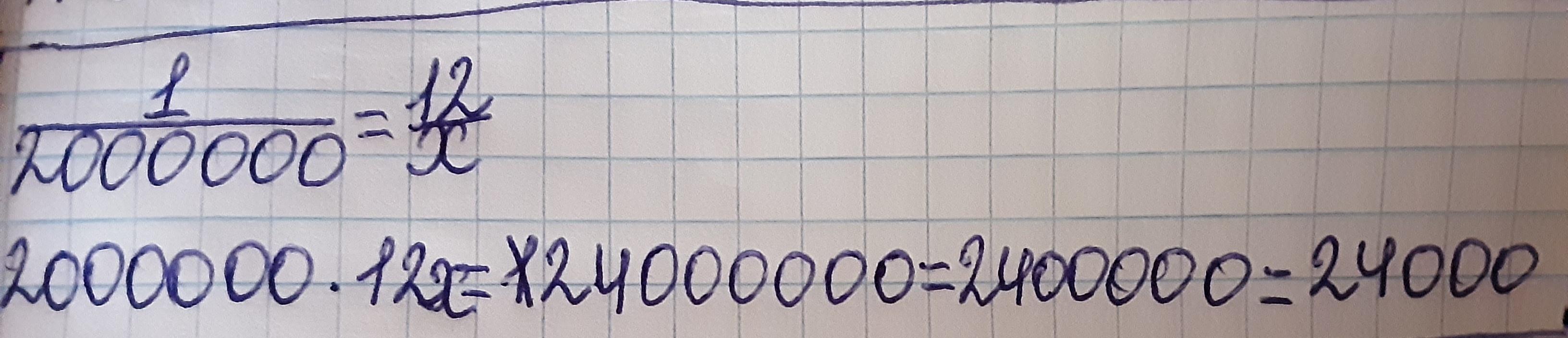 Масштабы 1:2000000 болатын картадан Дәурен өз үйінкн әжесінің үйіне дейінгі қашықтықты есептеді.Ол қашықтық 12 см-ге тең болды.Дәуреннің үйінен әжесінің үйіне дейінгі нақты қашықтықты тап.