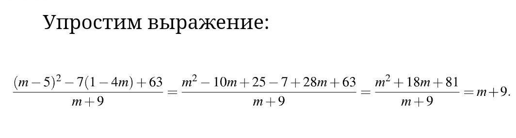 (m+9)^2 / (m+9) = ((m+9) (m+9)) / (m+9) = m+9