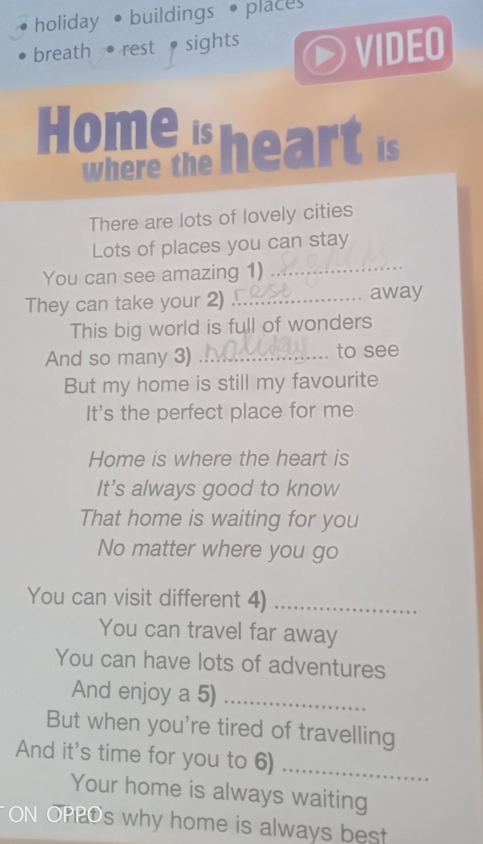 Ответ:1.buildings 2. breath 3. sights 4. places