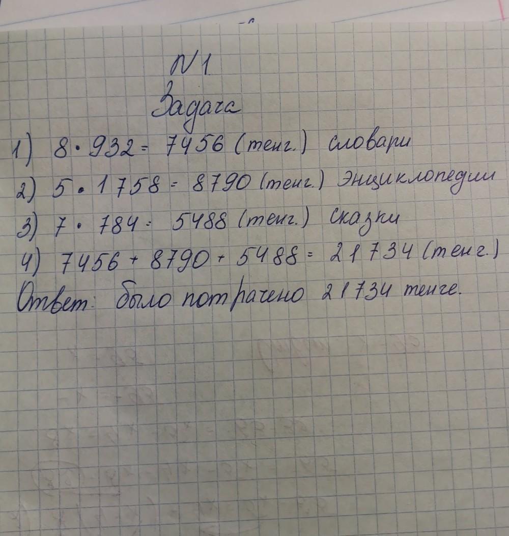 чтобы пополнить книжный фонд школьной библиотеки купили 8 словарей по 932 тенге 5 энциклопедия по 1758 тенге i7 сборных сказок по 784 тенге Сколько денег было потрачено на покупки книг