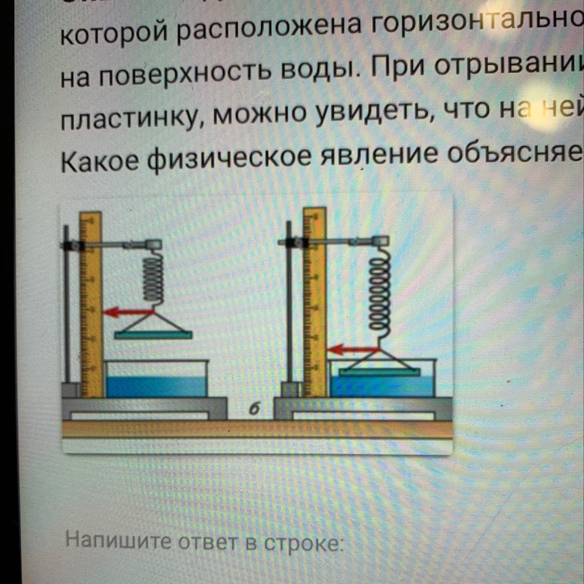 на поверхность воды. При отрывании пластинки от воды пружина заметно растянулась. Оторвав