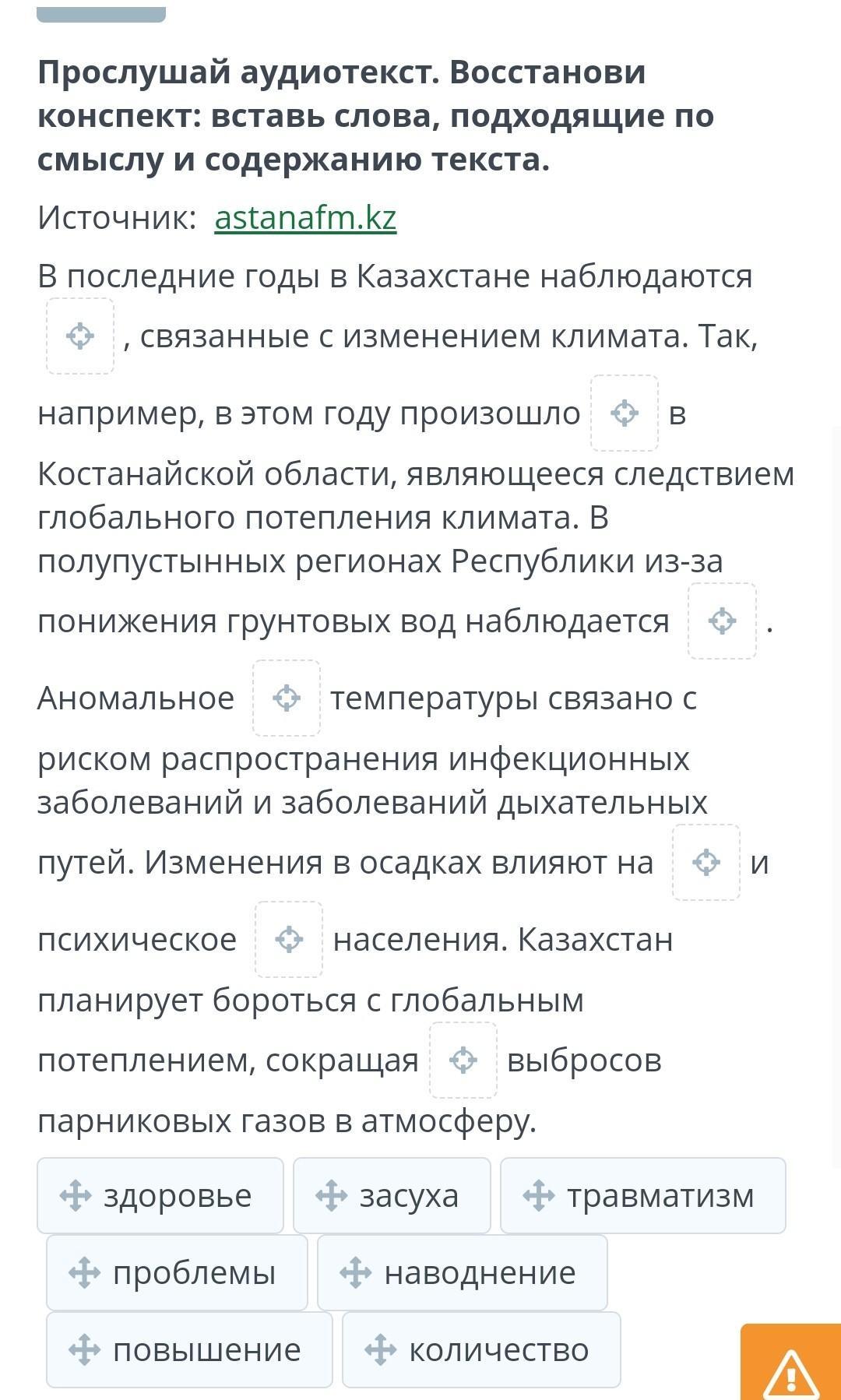Прослушай аудиотекст. Восстанови конспект: вставь слова, подходящие по смыслу и содержанию текста.
