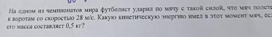 E=mv²/2=(0,5×28²)÷2=196 дж