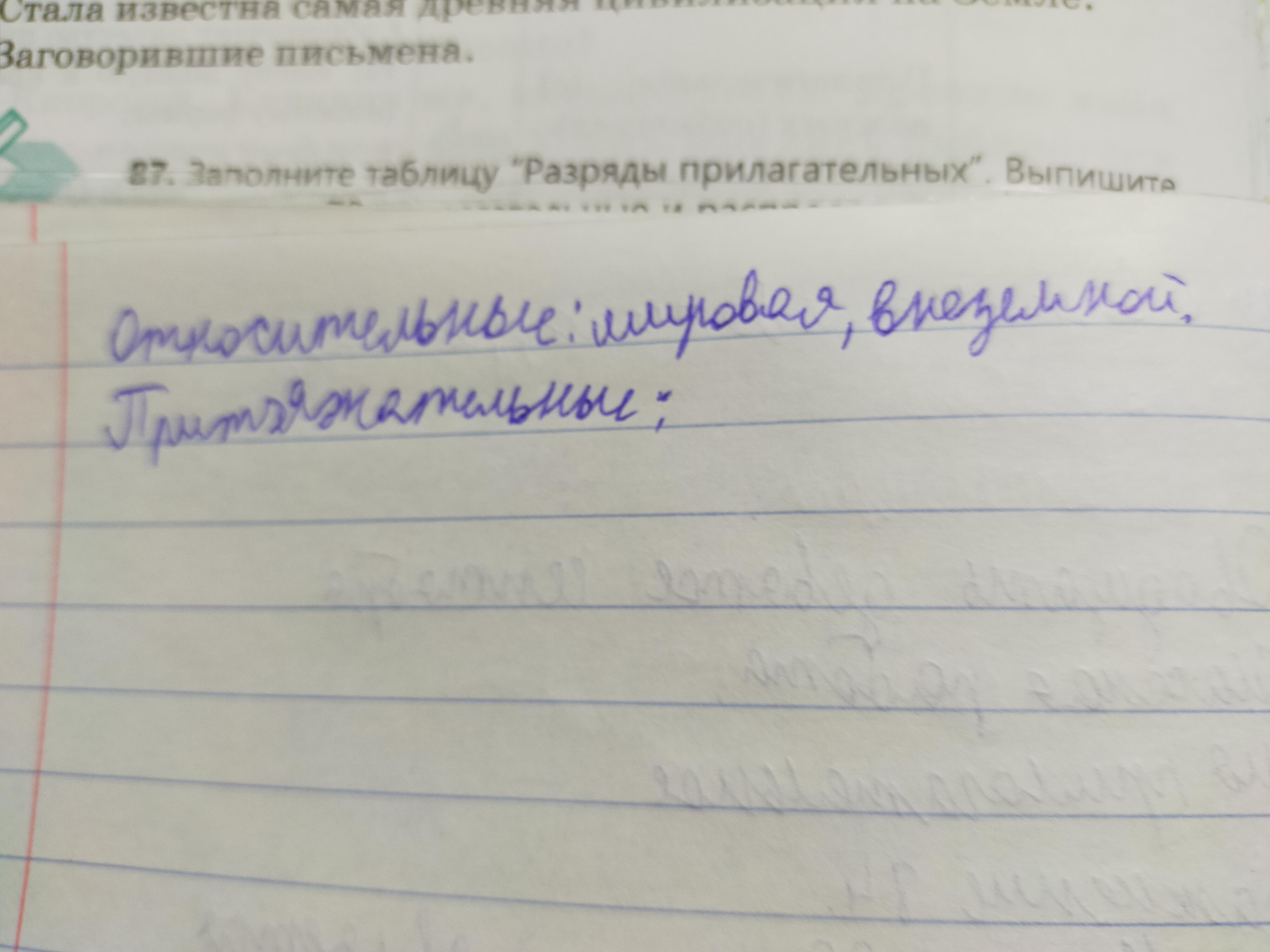 87. Заполните таблицу “Разряды прилагательных". Выпишите