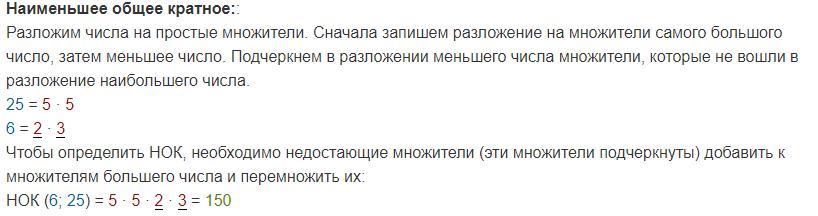 Разложим на простые множители числа 6 и 25: