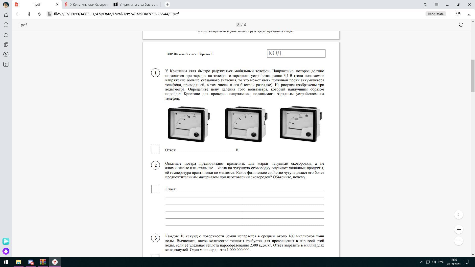 Выбираем 2 прибор, т.к на нем значения шкалы больше всего подходят к тому напряжению, которое дано (3.1)