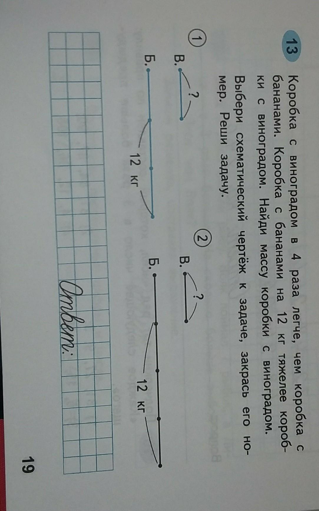 2) 12:3=4 кг приходится на 1 часть это и будет вес винограда.
