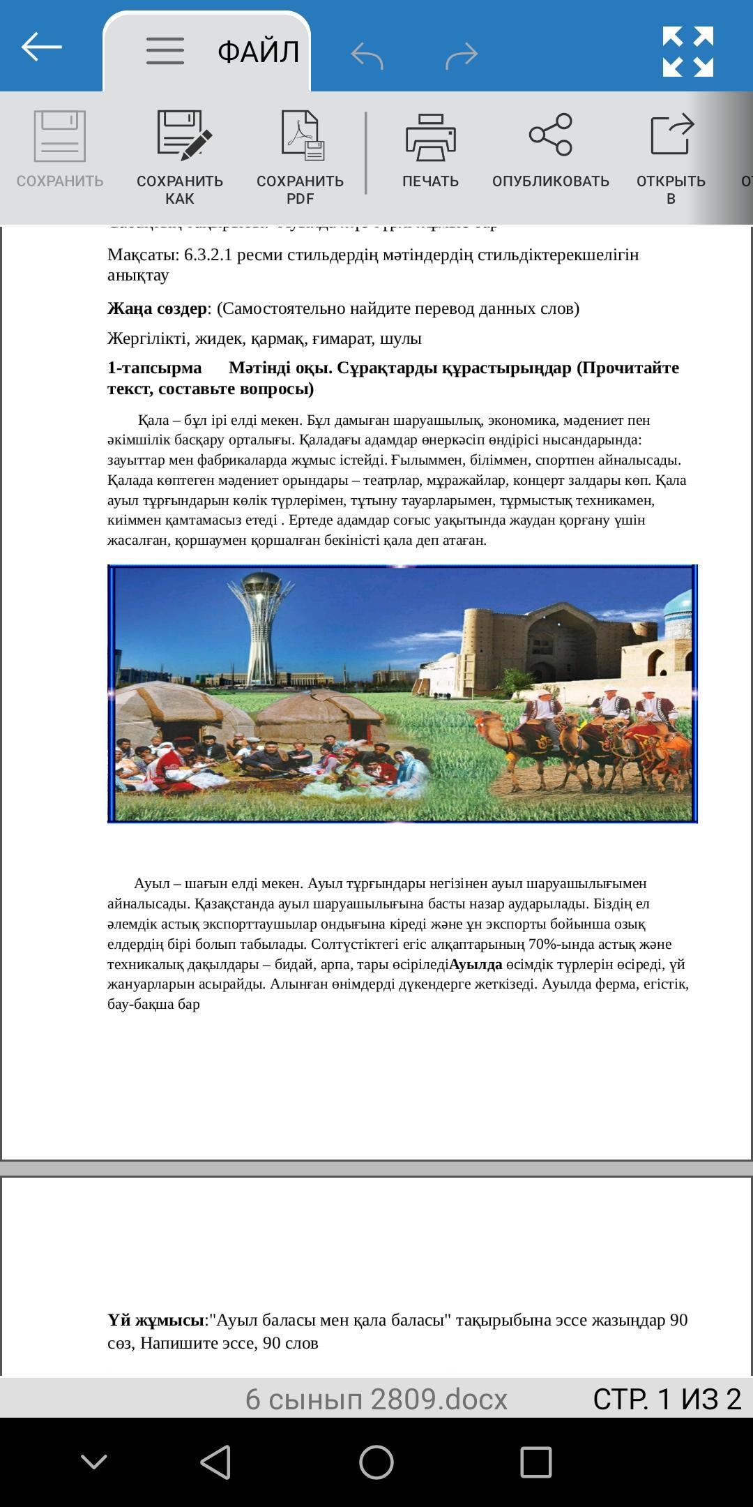 1-тапсырма Мәтінді оқы. Сұрақтарды құрастырыңдар (Прочитайте текст, составьте вопросы)