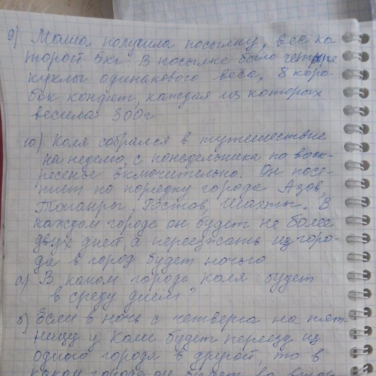 Маша получила посылку вес которой 5 кг,в посылке было четыре куклы одинакового веса,8 кг коробок конфет,каждая из них весила 300 кг