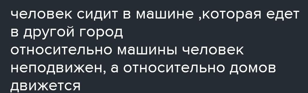 -Вы едите в машине, относительно машины вы в покое, а относительно земли не перемещаетесь